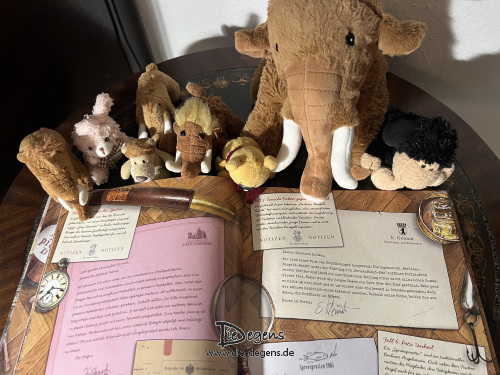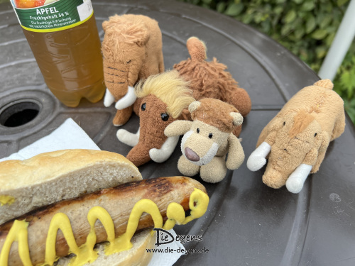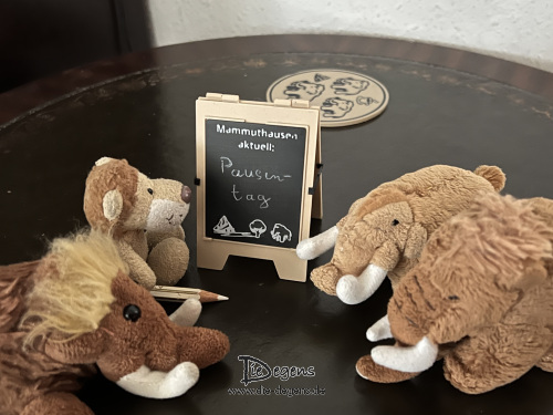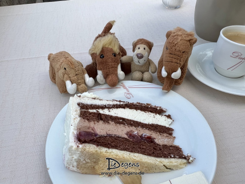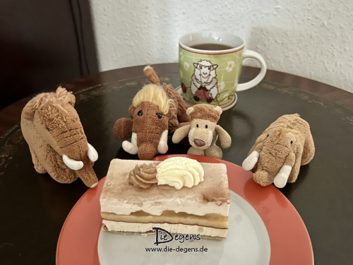 Am Mittag sind wir dann mit unserem verspäteten Zug wieder Richtung Basel gefahren und sind am Nachmittag in Mammuthausen eingetroffen. Dort wartete schon Kuschelmammut auf uns, um bei Tee und Linzer Torte alles vom Plüschitreffen zu erfahren.