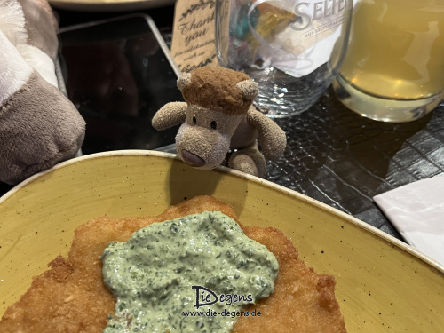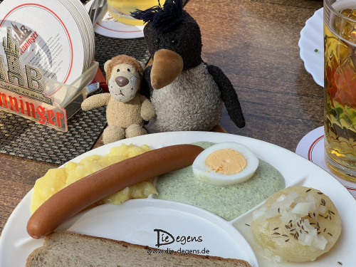 Am Abend waren wir dann alle zusammen essen. Da ich sehr hungrig war, habe ich mich bei allen durchprobiert und mich ordentlich sattgefuttert. Natürlich habe ich auch die berühmte Frankfurter grüne Sauce probiert.
