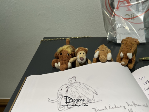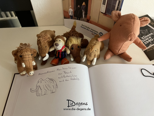 Es war Tag des Denkmals – da war es naheliegend, dass wir uns die Burg in Mammuthausen (ihr wisst: auf Google Maps wird das Lörrach angezeigt) gemeinsam besuchen und die Werkstätten des Vereins, der die Burg betreut, anschauen. Nach einem Mittagessen mit Flammkuchen und der Entdeckung eines neuen Geheimgangs auf dem Burggelände sind wir noch ins Dreiländermuseum gefahren. Dort wollten die Mammuthausener Mammuts dem Mammut aus der Häkelsgruppe unbedingt die Mammut-Fundstücke zeigen. Und das haben wir dann auch gemacht.