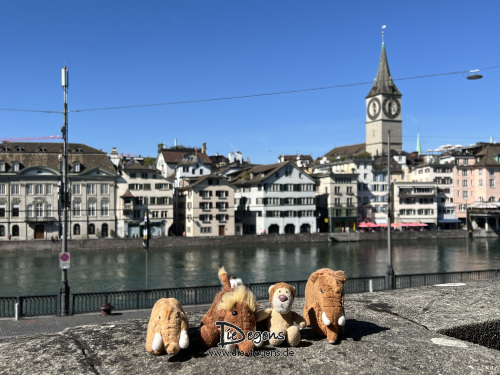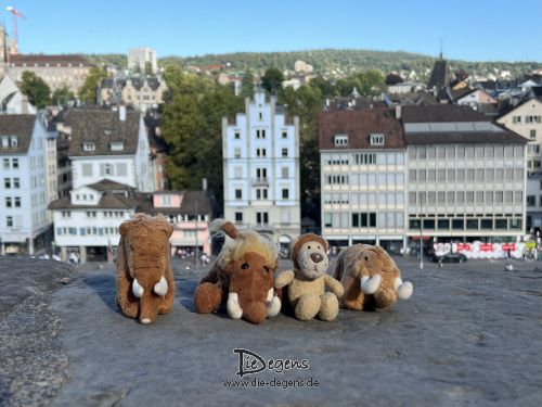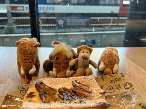 Der nächste Tag war Samstag – also morgens erstmal traditionell auf den Markt zum Einkaufen. Danach sind wir nach Zürich gefahren. Dort hat der Mensch der Mammuts am Zürichsee an einem Treffen von Bluesky-Nutzern aus der Region teilgenommen. Andere Plüschies waren leider nicht am Start.
