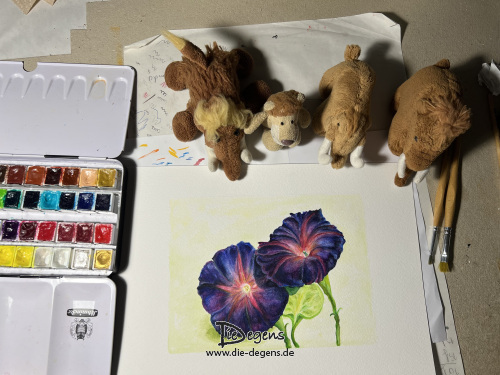 Am dritten Regentag waren wir in der Bibliothek und haben später gemalt.