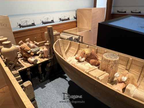 Im Museum gab es auch Stationen zum Mitmachen. Einen Brennofen bestücken, eine Galeere beladen und ein Bett ausprobieren.