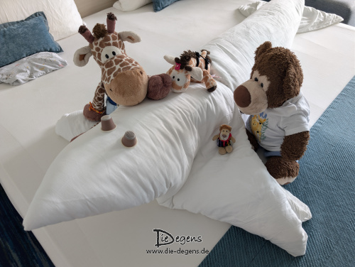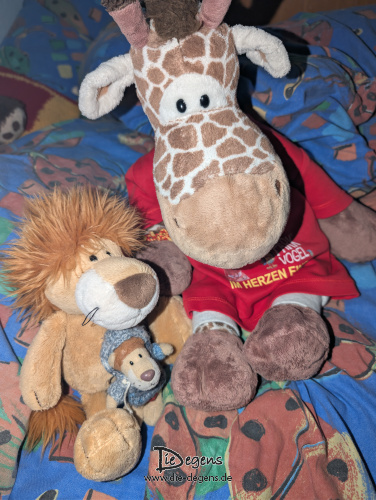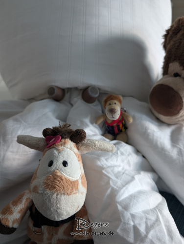 Vorher wurde aber Zuhause noch ein paar Tage lang gechillt. Mit Papa Löwe, Günni und all den vielen anderen aus der großen bunten Plüschherde haben wir uns die Bäuche vollgeschlagen und Geschichten erzählt. Hauptsächlich habe ich natürlich von meiner 13. Reise berichtet. Ich war ja immerhin 13 Monate lang unterwegs. Aber hauptsächlich haben wir der großen Reise entgegengefiebert, zu der übrigens vier Plüschies mitkommen durften. Tatze, Debbie, Günni und ich.