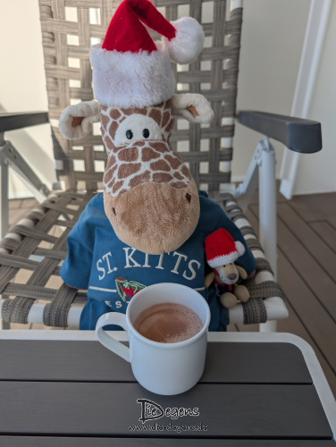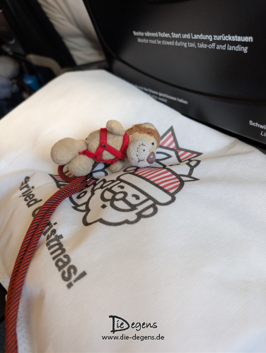 Die Menschin ist schon ganz früh am Morgen mit uns Plüschies auf dem Schiff herumgelaufen. An der Rezeption haben wir den großen Weihnachtsbaum bewundert und durften auf dem Stuhl vom Weihnachtsmann sitzen.