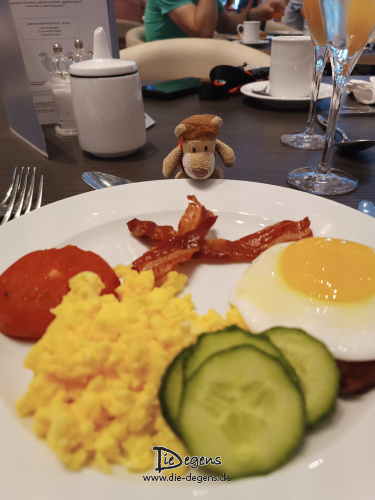 Nach einem Cocktail, einem Snack zu Mittag und Eis auf dem Kabinenbalkon wurde ein bisschen gechillt, bevor ich dann am Abend zum ersten Mal mein Lieblingsspiel, mit dem ich mich auf Kreuzfahrten immer sehr gerne beschäftige, spielen durfte: Buffet-Fräse. Das Essen war gewohnt lecker an Bord und sie haben mich tatsächlich satt bekommen. Zumindest für ein paar Momente.
