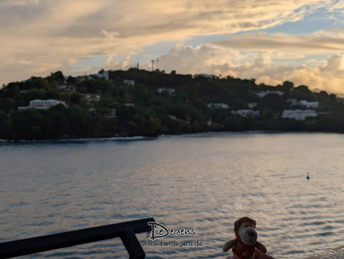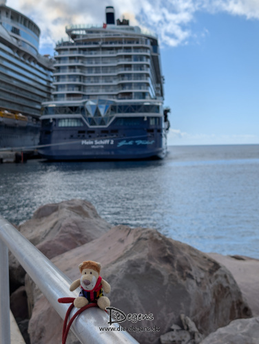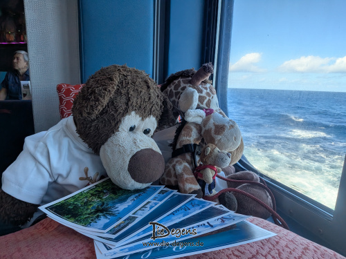 Es war quasi ein halber Seetag, denn unsere Ankunft auf Antigua war erst für die Nachmittagszeit geplant. Die Menschen sind trotzdem sehr früh aufgestanden und schon um 05.30 Uhr in den Poll und in den Whirlpool oben an Deck gehüpft. Uns Plüschies war das viel zu früh, und deswegen haben wir ein bisschen länger geschlafen.