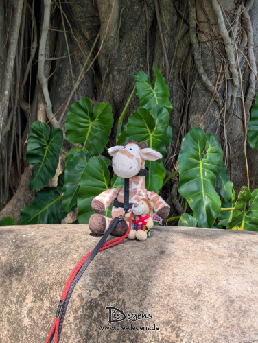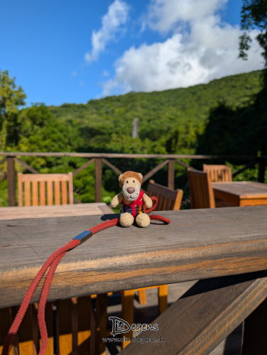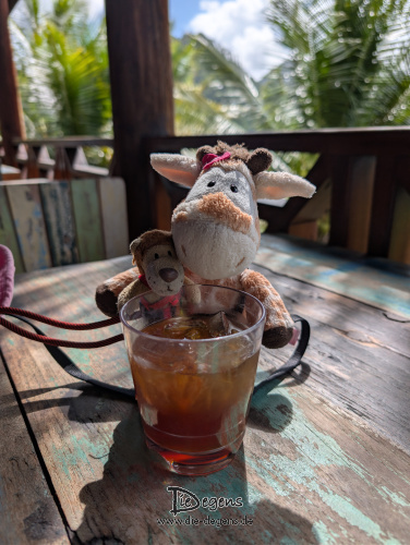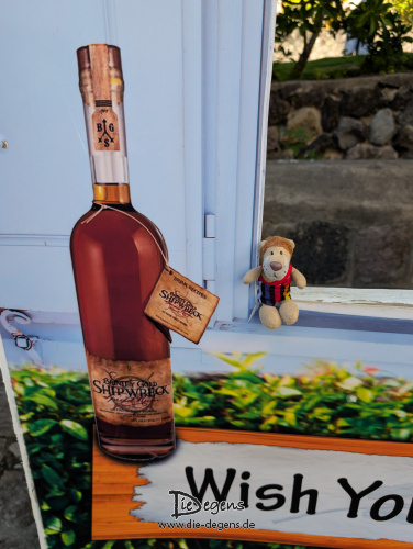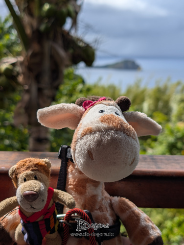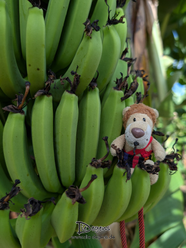 Mit Ausnahme von Tatze haben wir uns alle auf wieder auf einen Ausflug begeben. Auf dem ersten Teil, dem Besuch einer Destillerie mit Rum-Verkostung haben wir Plüschies uns noch ruhig verhalten und sind in den Rucksäcken der Menschen geblieben. Als es danach bei einem kurzen Zwischenstopp zu in eine Bananenplantage hinein ging, konnte ich mich aber nicht zurückhalten. In Bananen kann man so schön klettern…