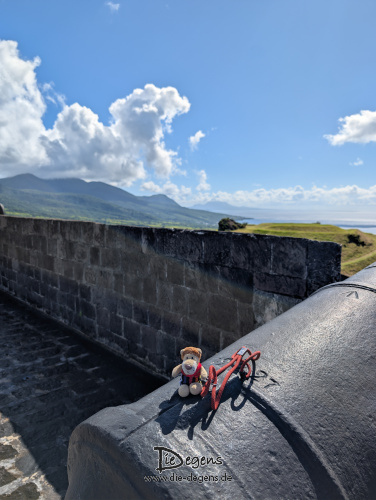 Nach dem Frühstück haben die Menschen mit Debbie, Günni und mir einen Spaziergang durch St. George’s unternommen. Wir sind auf einen Hügel mit einem alten Fort hinaufgegangen, von dem aus man einen schönen Überblick hatte.