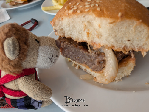 Nachdem wir noch etwas auf dem Balkon waren, wollte ich unbedingt einen Burger verputzen. Meinem Wunsch wurde entsprochen.