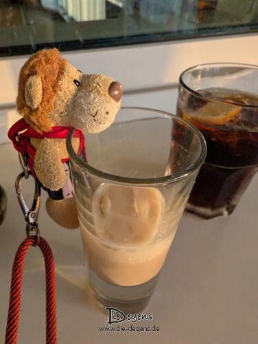 Nachdem wir den Vormittag wieder auf dem Balkon verbracht hatten, sind wir mit der gesamten Reisegruppe in eine der vielen Bars an Bord umgezogen. Zum Glück ging es der Menschin so langsam wieder besser…