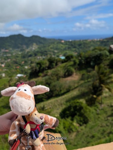 Im Jungle Bay Resort gab es einen Rumpunsch für uns und wir durften von einer Terrasse aus noch ein bisschen die Aussicht genießen.