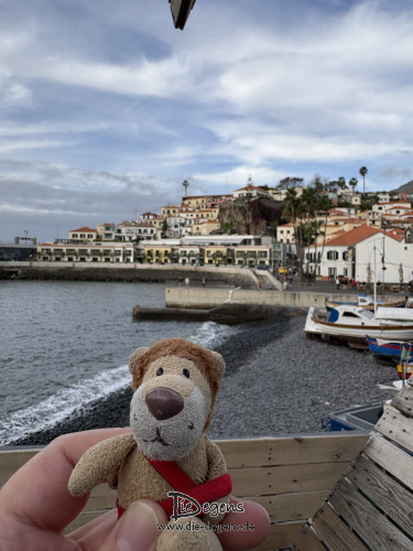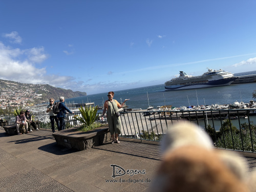 Am nächsten Morgen, mit dem Schiff noch immer in Funchal, haben wir uns nach dem Frühstück auf den Weg nach Camara de Lobos gemacht. Wir haben dort das Stadtmuseum besucht. Dort gab es die berühmten Körbe von Madeira, mit denen man durch die Straßen den Berg hinunterfahren kann, auch in Plüschiegröße. Leider aber unverkäuflich. In der Stadt durfte ich auf der Statue von Winston Churchill sitzen.