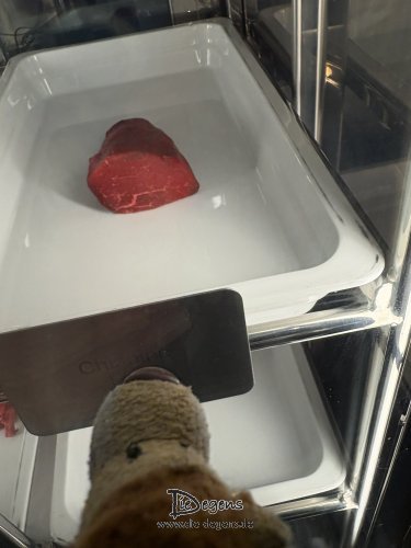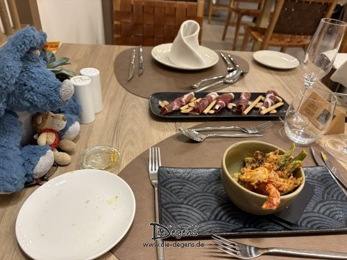 Abends waren wir dann im Surf&Turf Steakhouse an Bord. Das kannte ich ja schon von meiner letzten Kreuzfahrt mit meinen Menschen. Umso größer war die Vorfreude auf diesen Programmpunkt, den wir dann mit einer „Fleischbeschau“ begonnen haben. Da läuft einem Löwen einfach nur das Wasser im Maul zusammen.