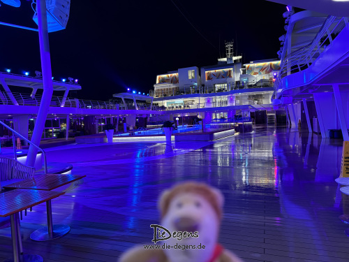 Da unsere erste Station auf der Kreuzfahrt die zu Portugal gehörende Insel Madeira sein sollte, stand erstmal ein Seetag auf dem Programm. Ich habe die Gelegenheit genutzt, und bin eine Zeit lang alleine übers Schiff geschlichen. Dabei musste ich natürlich vorsichtig sein, denn ich war ja mit dem Air Tag ausgestattet. Trotzdem habe ich mir einige interessante Bereiche auf dem Schiff angeschaut. Da ich alleine unterwegs war, gibt es davon leider keine Fotos. Da der Tag ziemlich stürmisch war und der Seegang entsprechend stark, habe ich mir einen Spaß daraus gemacht, andere Passagiere bei ihrem Kampf mit der Seekrankheit zu beobachten.