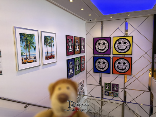 Am nächsten Morgen sind wir dann noch ganz früh übers Schiff gelaufen, um noch einige Fotos zu machen. Wir waren auf dem menschenleeren Pooldeck, haben die Einfahrt in den Hafen von Las Palmas beobachtet, haben uns nochmal eingehend die Bilder und Kunstwerke in der Galerie angeschaut und sind dann zum Frühstück gegangen. Danach war leider die Zeit gekommen, um das Schiff verlassen zu müssen. Aber wir mussten noch nicht nach Hause fliegen, denn es war noch ein Anschlussaufenthalt im Hotel Occidental Jandia Playa auf Gran Canaria geplant, wo wir vom Schiff aus mit einem Shuttlebus hingebracht wurden.